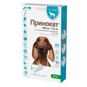ПРИНОКАТ капли для собак весом 4-10 кг на холку для обработки собак от наружных и внутренних паразитов.
